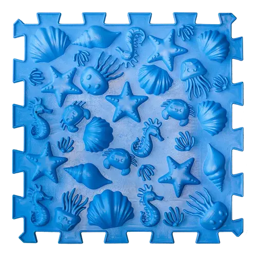 Covoras ortopedic pentru masaj Puzzle "Mix" 6 elemente, Ciupercă albastră, relaxare și antrenarea musculaturii tălpilor
