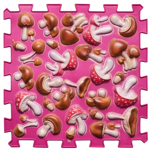 Covoras ortopedic pentru masaj Puzzle "Mix" 6 elemente, Ciupercă roz, Ciupercă albastră, relaxare și antrenarea musculaturii tălpilor