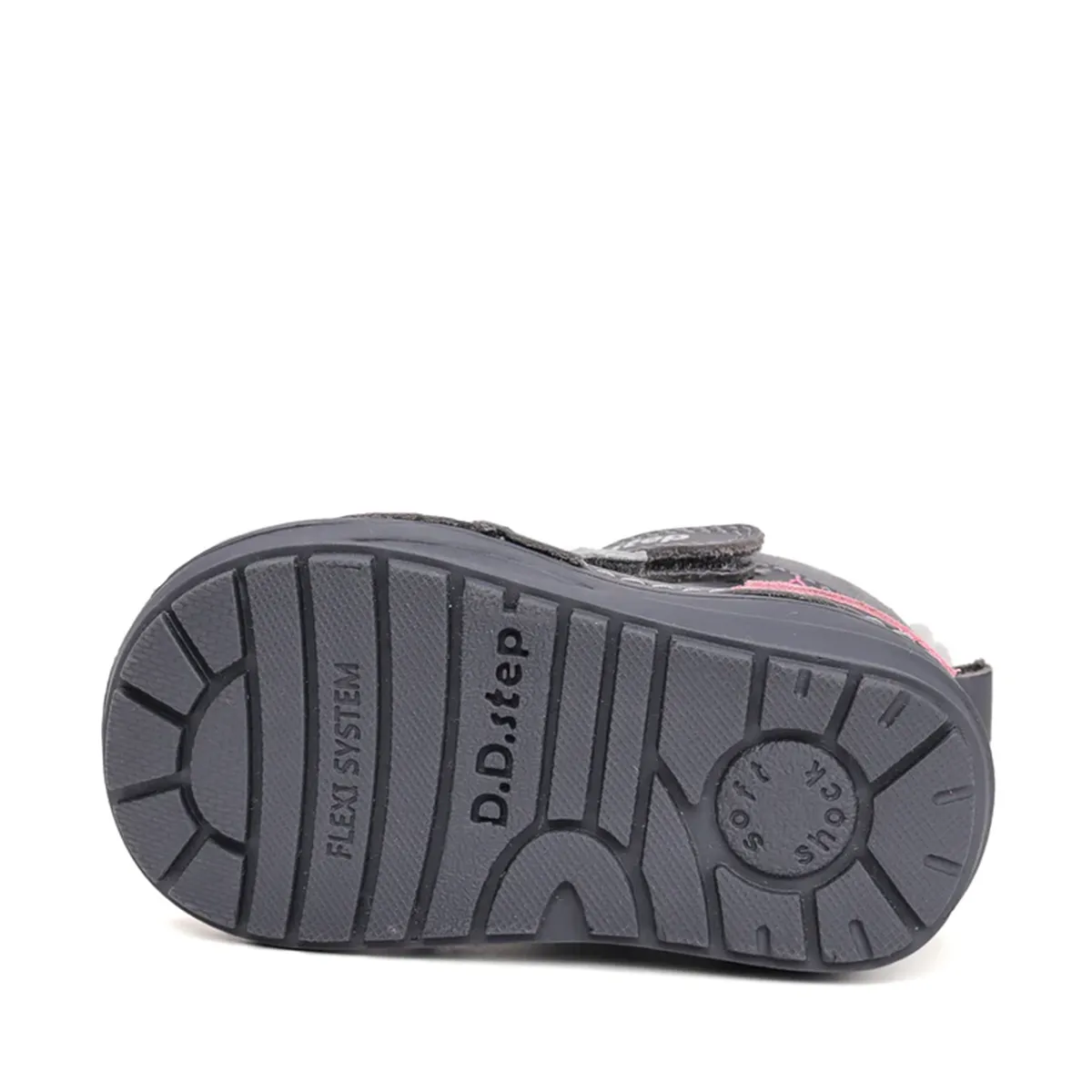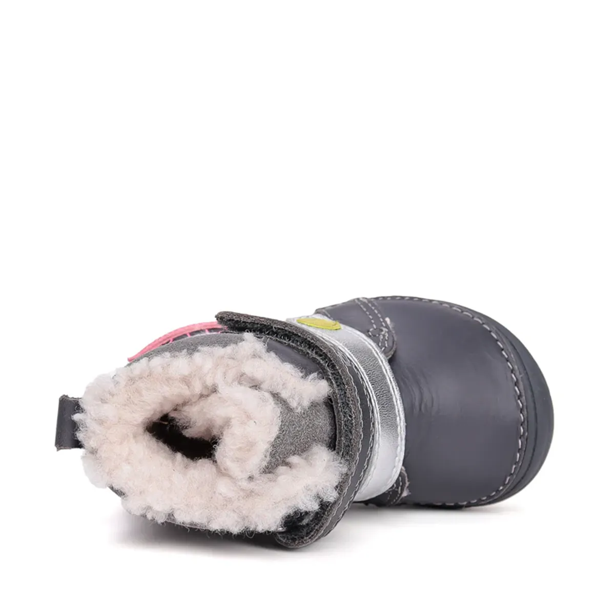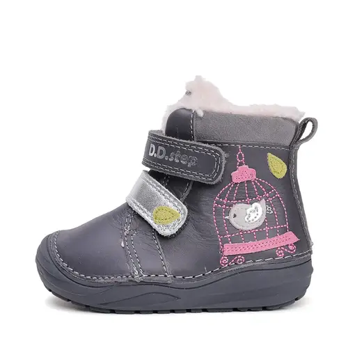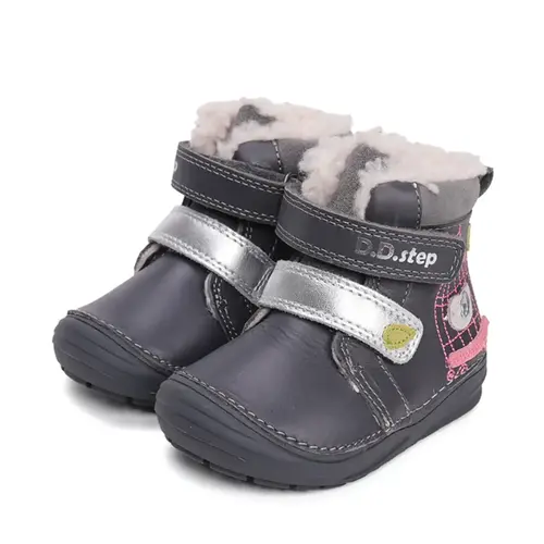 Ghete din piele naturală, cu interior blană ecologică, prevăzute cu talpă flexibilă pentru un mers natural. Calapodul standard lat (picioruse normale/late) oferă confort și stabilitate în timpul mersului. Materialele respirabile și forma ergonomică susțin dezvoltarea sănătoasă a piciorului și libertatea de mișcare. Brandul D.D. Step este recunoscut pentru atenția la detalii și calitatea materialelor folosite. O alegere ideală pentru copiii aflați la primii pași sau pentru purtarea zilnică, oferind confort și protecție în orice sezon.