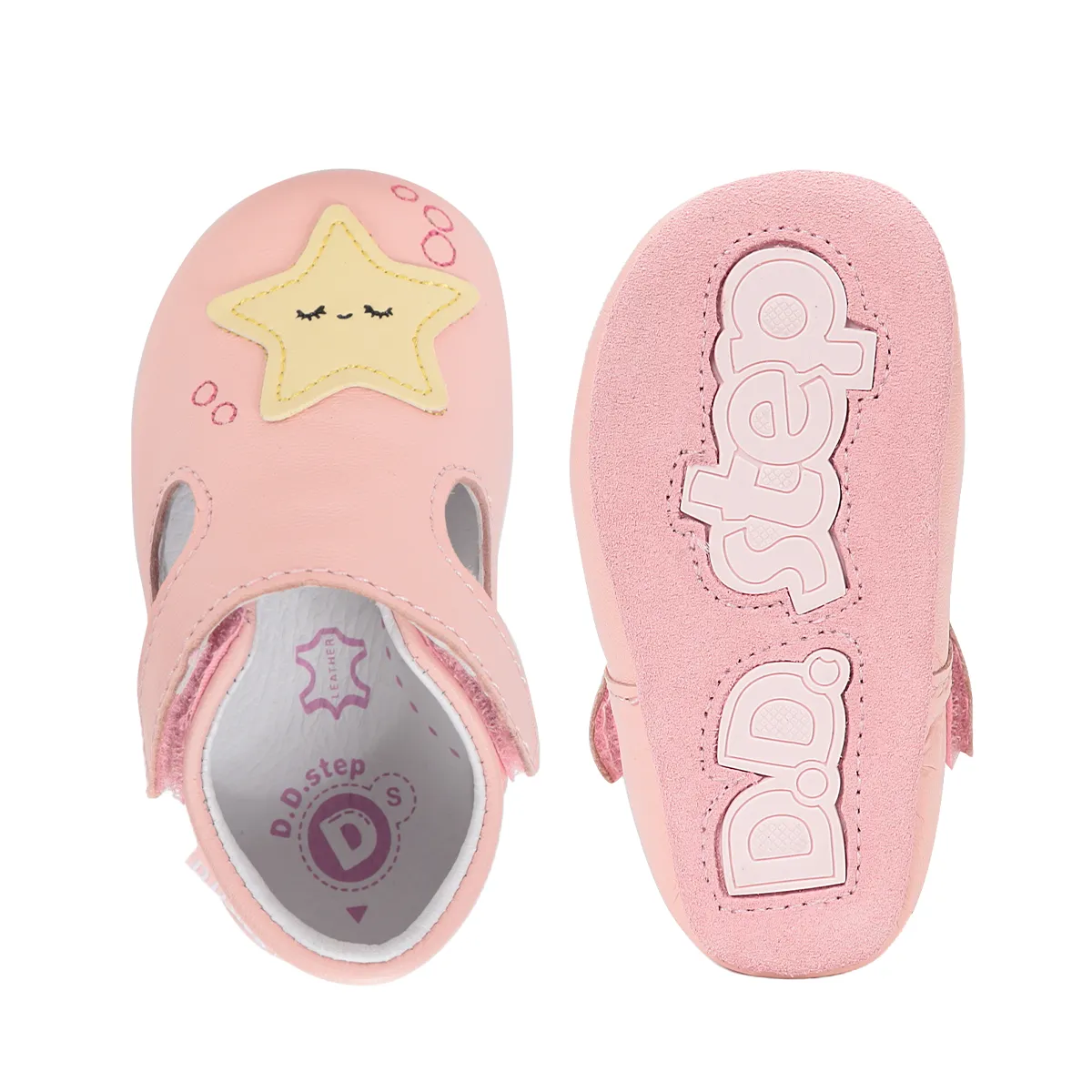 Acești pantofi D.D. Step din piele naturală de calitate sunt special concepuți pentru piciorușe în dezvoltare, oferind confort și libertate de mișcare. Calapodul este standard-lat, ideal pentru copiii cu piciorușe normale sau ușor mai pufoase.
