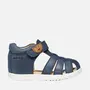 Sandale confortabile și respirabile pentru primii pași, cu un aspect casual și relaxat. Prezentat aici în culoarea bleumarin, modelul Macchia dispune de o căpută din piele moale cerată, cu vârful tip "cage" și călcâiul închis. Talpa exterioară flexibilă, durabilă și antiderapantă asigură un sprijin sigur pentru a însoți primele descoperiri ale celor mici.
